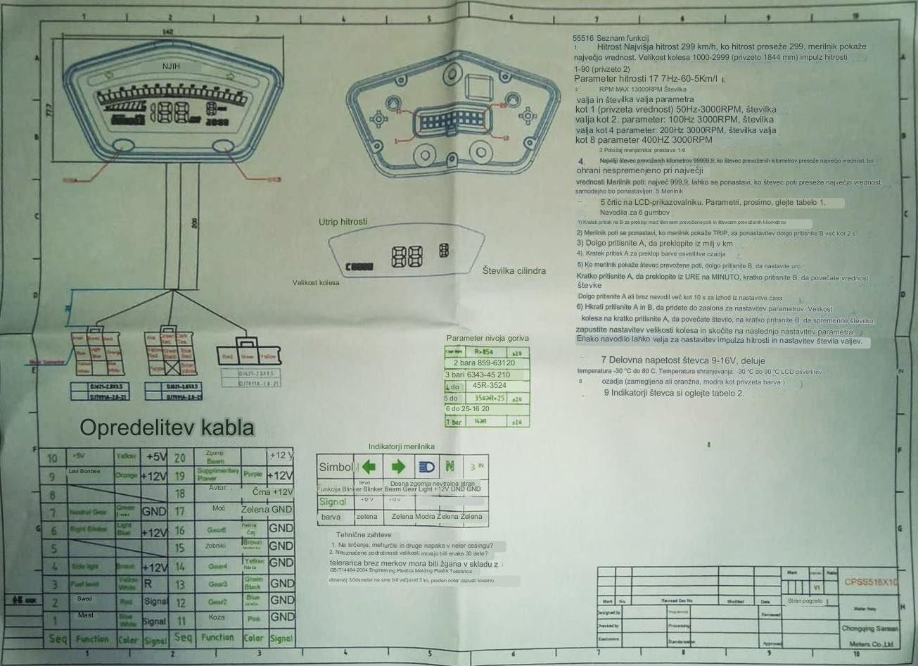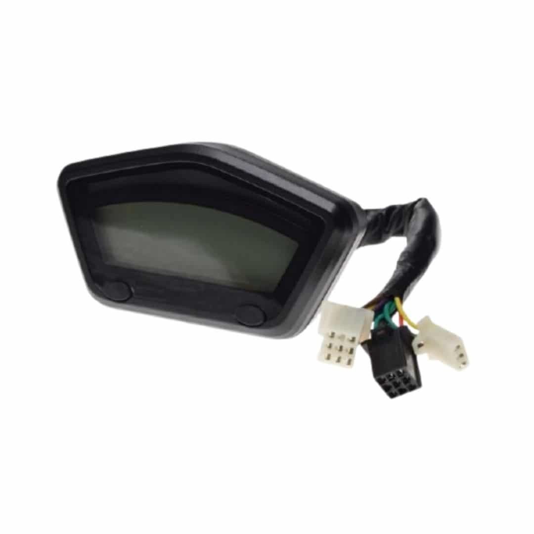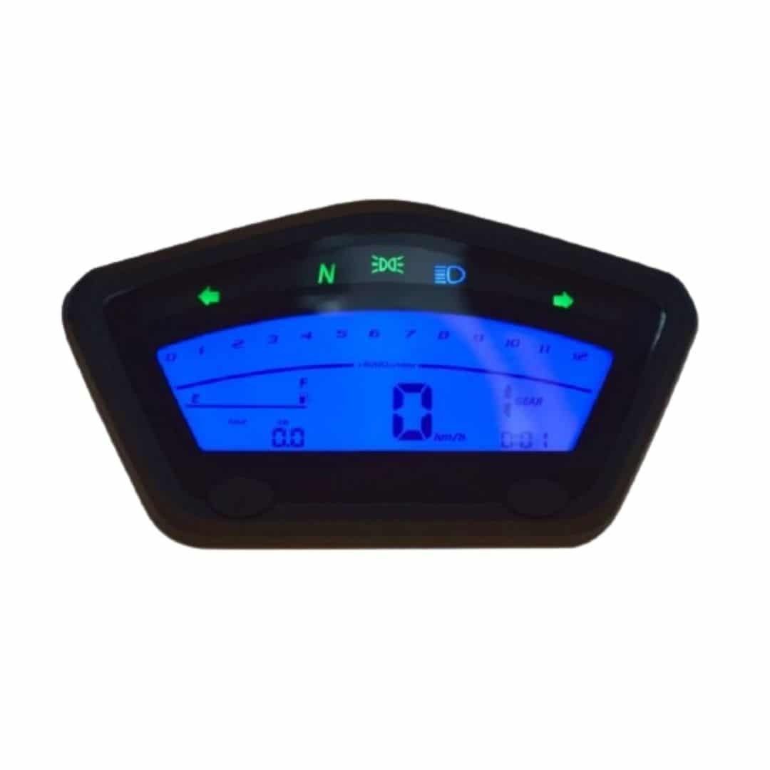 Merilnik prikazuje trenutno hitrost , obrate , prestave , prevožene kilometre z rezervarjem in skupne prevožene kilometre. Hkrati pa tudi indikatorji smernikov , luči itd .