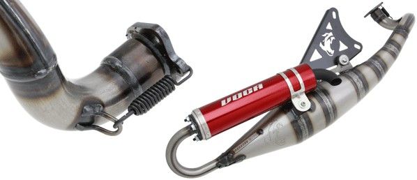 VOCA ispušnih Sabotage 50cc / 70cc MBK Nitro / Aerox (crvena prigušivač), street-pravni ispušnih španjolski tvrtke VOCA. Njegova osobitost je postavka razlikuje od ostalih ulica-pravni ispuha – to je ispušni ulica-pravna sa 100% trkaći izgled. Tehničke pojedinosti: Lima za proširenje komora, valjane i zavaren ručno Proljeće-mounted ispušni prirubnicu Aluminij prigušivač s anodiziranog crvenom završiti Ispušni nosač s lasered iz VOCA” logo U pogledu performansi, ovaj ispušni će vam dobiti više snage, pogotovo na niskim i sredinom rasponu broja okretaja, te povećati brzinu. To je bio razvijen za 50cc OEM motora, uz mogućnost da se kasnije nadograditi svoj set-up za 70cc, a imajući isti ispuh. Preporučujemo 17.5mm karburator (minimum) i sportski varijatora dobiti najviše iz ovog ispuha. Street-pravni. VIDEO : https://www.youtube.com/watch?v=rd56P970gUg