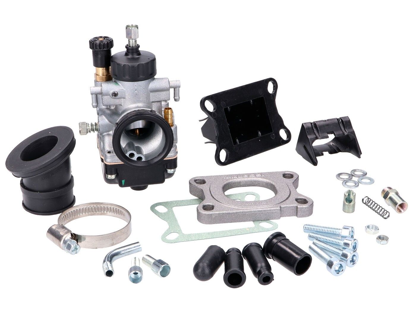 Malossi set rasplinjača s Dellorto PHBG 21 mm Moto rasplinjačem: Komplet sa svim komponentama potrebnim za pristojno postavljanje rasplinjača. Ovaj komplet je svestrani bezbrižni paket sa svim potrebnim pojedinačnim komponentama za savršenu izlaznu snagu i siguran rad cilindra za podešavanje.