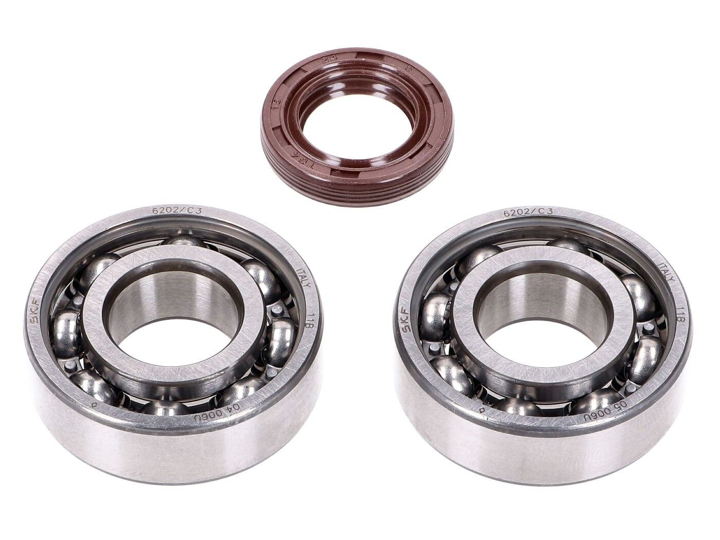 Komplet uključuje jedan lijevi i jedan desni SKF ležaj radilice te FKM brtveni prsten radilice. SKF ležajevi izrađeni su u toleranciji C3 s metalnim kavezom, zbog čega su prikladni za sve razine tuninga. Bilo da se radi o serijskom ili visoko modificiranom motoru, ovaj komplet osigurava pouzdan rad u svim uvjetima i pri svim opterećenjima.