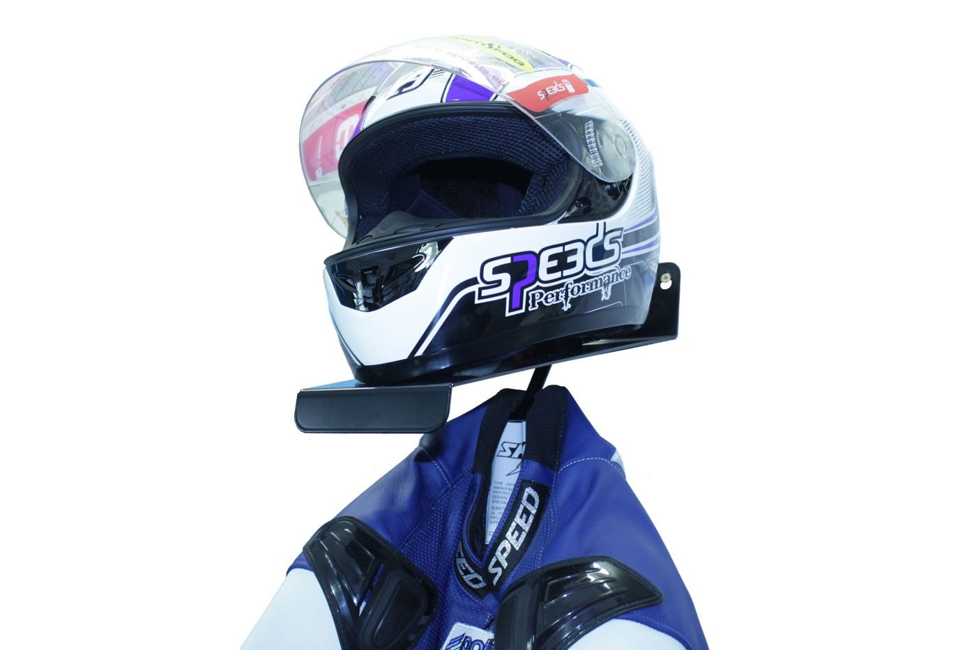 Konačno, način da uredno objesite svoju opremu za jahanje. Ova čvrsta i stabilna vješalica izrađena je od crnog čeličnog lima presvučenog prahom i idealna je za odlaganje kacige, jakne, hlača ili jednodijelnog odijela i stane u svaku garažu ili je također idealna za prezentacijske svrhe u trgovini motociklima. Također je izvrstan dar zbog univerzalne primjene. Proizvedeno u Austriji. Kaciga i kožno odijelo nisu uključeni i služe za demonstraciju.