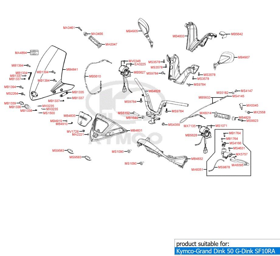 Utež krmila desna srebrna Or. Kymco 50 - 500cc