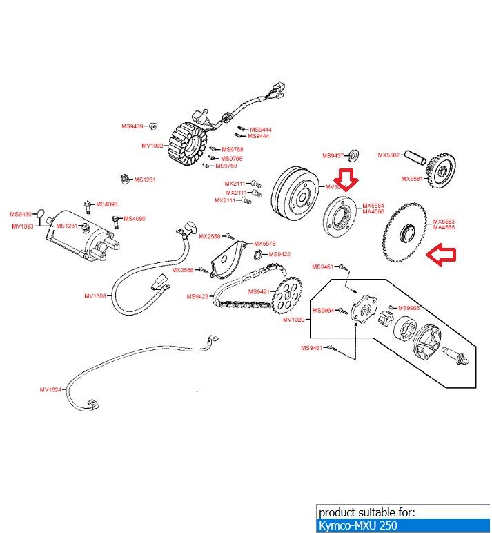 Starter kvačilo – Bendix sa zupčanikom prijenosa za Kymco 250 , 300cc