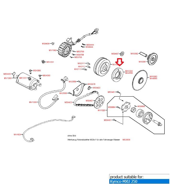 Starter kvačilo – Bendix za Kymco 250 , 300