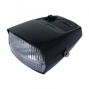 Kompletan far u crnoj boji, prikladan za razne tipove mopeda.